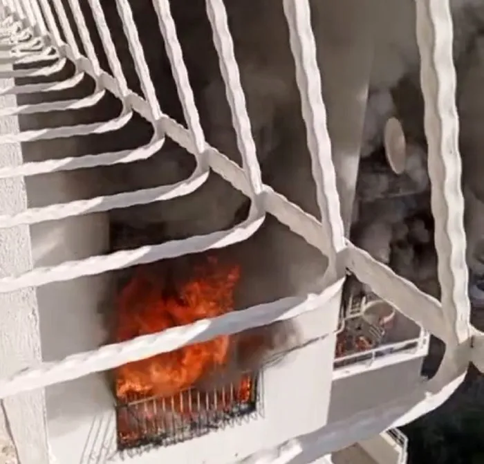 Adana’da bir apartmanın 6’ncı katında çıkan yangın cep telefonu kamerasıyla saniye saniye görüntülendi.