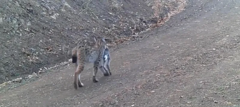 Çankırı’da avladığı hayvanı ağzında taşıyan vaşak ile karacalar ve kurt sürüsü fotokapan kameralarına yansıdı.
