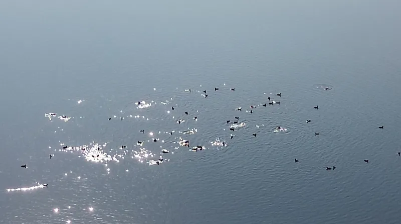 Kars Barajı’nda göç öncesinde dinlenen yüzlerce kuş çeşidi dron ile havadan görüntülendi. Baraj gölünde dinlenen ve karınlarını doyuran kuşlar daha sonra sıcak yerlere göç etmeye devam ediyor.