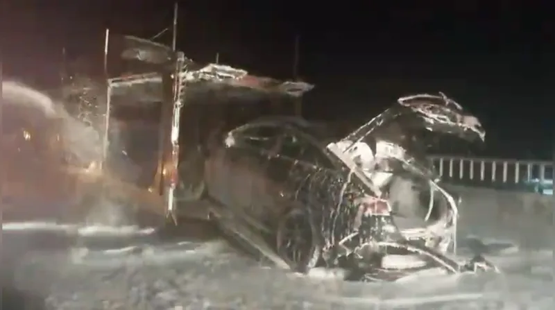 Osmaniye’nin Bahçe ilçesinde araç taşıyan bir tırda çıkan yangında, sıfır 3 araç tamamen yanarak kullanılamaz hale geldi.