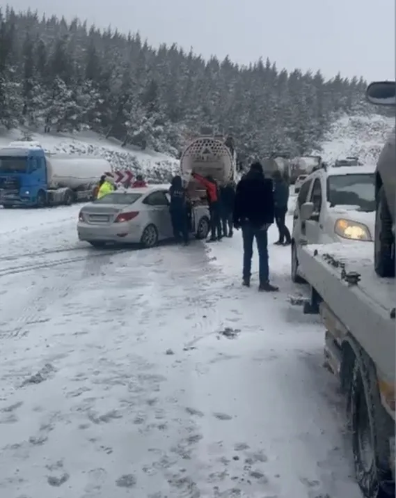 Öte yandan, yoğun kar yağışı altında bölgede görev yapan AFAD ekipleri, yolda mahsur kalan ve beklemek zorunda kalan sürücülere yiyecek ve battaniye dağıtarak destek sağladı. Ekipler, kar yağışının etkisini sürdürdüğü bölgede güvenlik önlemlerini artırırken, trafik kontrollü olarak sağlandı.