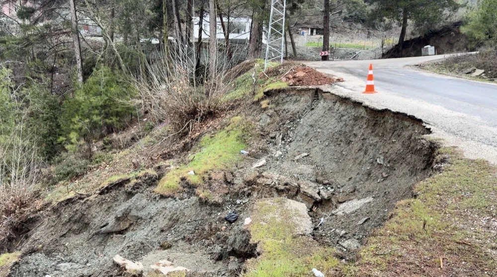 Osmaniye’nin Bahçe ilçesinde yoğun yağış nedeniyle yolda çökme meydana geldi.