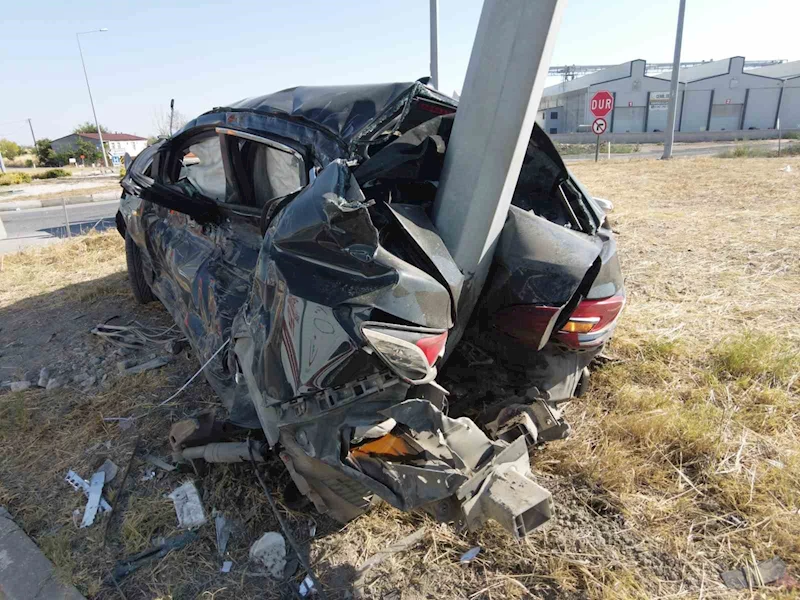 Edirne’de otomobilin direğe ok gibi saplandığı kazada 3 kişi yaralandı.