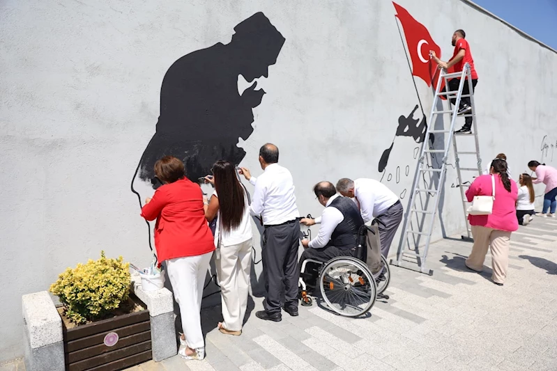 Bursa Büyükşehir Belediyesi tarafından 30 Ağustos Zafer Bayramı etkinlikleri kapsamında eline boya fırçası olan şehit yakınları ve gaziler, zafer ruhunu Mihraplı Şehitler Abidesi giriş yolundaki duvarlara yansıttı.
